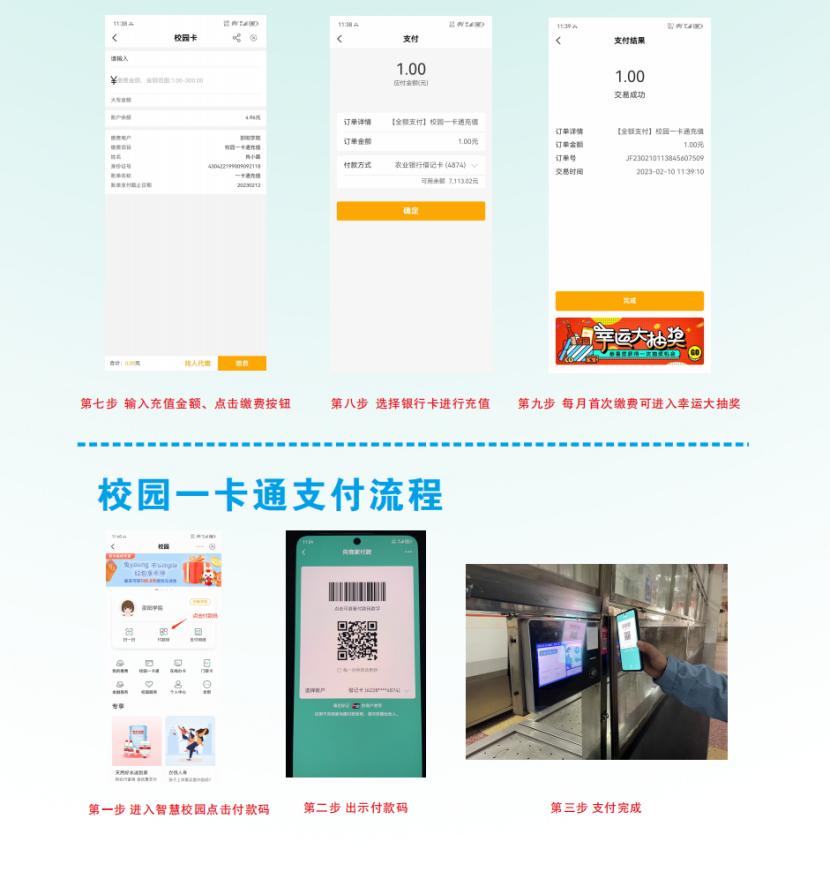 1.每位新生在入校时可免费领取首张校园卡。计财处、农行、基建与后勤服务中心一般在新生入校前完成预制校园卡、预写入一卡通功能,在报到期间发放校园卡并引导学生激活银行卡金融功能。